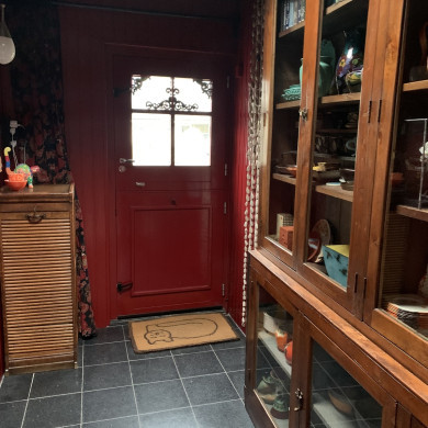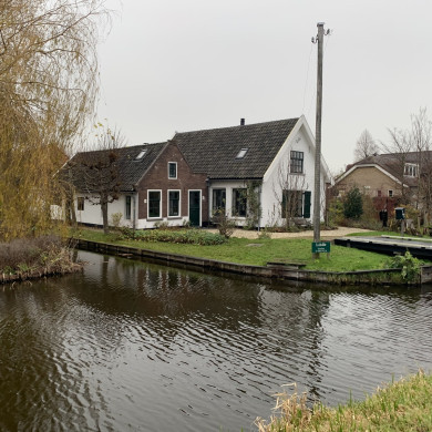 Boerderij uit het midden van de 19e eeuw. Rieten wolfdak, vlechtingen, vensters met zesruitsschuiframen.