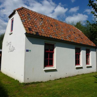 Twee bakstenen hekpijlers met hardstenen dekplaten, waarop in hout gesneden en gepolychromeerde Lodewijk XV-SIERBEKRONINGEN, verbonden door een eveneens in hout gesneden en gepolychromeerd wapen met kroon en leeuwen, omgeven door Lodewijk XV-LOFWERK.