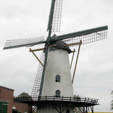 Korenmolen "De Witte Molen". Ronde stenen bovenkruier met lage stelling. 1850.