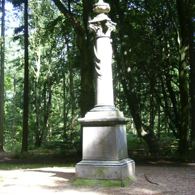 GEDENKZUIL. Opgericht door de burgerij van Oosterbeek op het landgoed de 'HEMELSE BERG'. Het zuiltje bevindt zich op het hoogste punt van het landgoed, in de as van de Berg op Zoomse Allee en de Beukenlaan naar het huis.