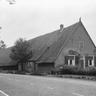 Tabaksboerderij, langhuis, stenen voorgevel, houten bedrijfsgedeelte met luiken, hoog zadeldak met pannen gedekt.