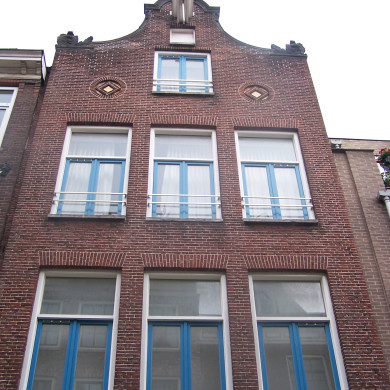 Huis, vanwege de zandstenen afdekkingen van de klokvormige geveltop (3e kwart 18e eeuw).