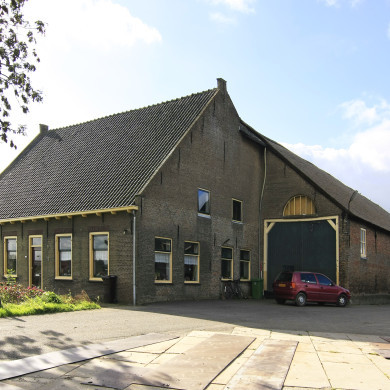 BOERDERIJ met dwars woonhuis, waarachter een hoge stal. Van het door een pannen zadeldak gedekte woonhuis dateert de achterste helft uit de 17e eeuw, terwijl de voorzijde vernieuwd is in het tweede kwart van de 19e eeuw. Het linker deel van de oostgevel heeft belangrijke details uit de bouwtijd: een venster met geblokte korfboognis en half kruiskozijn, waarvoor luiken met oude gehengen. Acht sierankers. Getoogde keldervenstertjes.