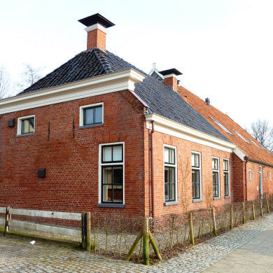 Pand uit de 18e eeuw, met een verdieping verhoogd in de 19e eeuw. Schilddak, voorgevel met in de vensters zesruitsschuiframen en houten kroonlijst. In de rechterzijgevel twee 19e eeuwse deuren met panelen en bovenlichten, in geprofileerde houten omlijstingen.