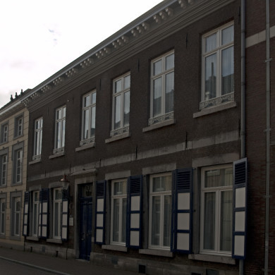 Huis met lijstgevel, XVIII, voorzien van rechthoekige omramingen en een horizontale band tussen de verdiepingen. Inwendig een schoorsteenmantel met schilderstuk: zinnebeeldige figuren van Maas en Roer en de stad op de achtergrond, XIXb. Verder dessus-de-porte met bloemen, XVIIIc.