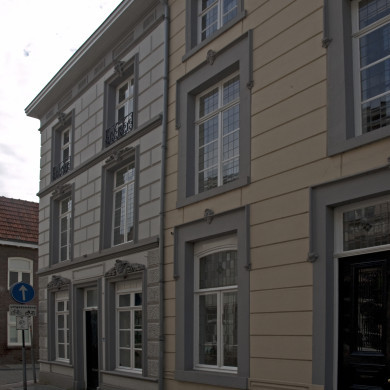 Huis met lijstgevel, XVIII, voorzien van rechthoekige omramingen en een horizontale band tussen de verdiepingen. Inwendig een schoorsteenmantel met schilderstuk: zinnebeeldige figuren van Maas en Roer en de stad op de achtergrond, XIXb. Verder dessus-de-porte met bloemen, XVIIIc.