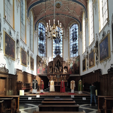 Laatgotische kapel van het voormalige Karthuizerklooster (thans Seminarie) met rijk stucplafond in Lodewijk XV-stijl. Aan de noordzijde de vroegere sacristie, XV. Aan de westkant de voormalige kapittelzaal met stergewelf, 1556. Ten westen hiervan de refter, inwendig, XVIII. Pandhof, XVII of XVIIIb. Tuinmuur langs drie zijden van het voormalige kloosterterrein, met o.a. aan de hoek Bethlehemstraat-Voogdijstraat laatgotische fragmenten. Inventaris: o.a. biechtstoel in regencestijl, koperen lezenaar, XVIa, kandelaars, schilderijen, XVII-XVIII, orgeltribune en orgelkas van J.B. le Picard (omstreeks 1740). In deze kas is een drieklaviers instrument geplaatst van W.Robustelly, gemaakt in 1762 voor de St.Nicolaaskerk te Eupen (Belgie). In 1967 werd dit instrument aangekocht door Verschueren Orgelbouw te Heythuysen. In 1993 kocht het bisdom Roermond het instrument voor plaatsing in de Caroluskapel. Klokkenstoel met klok van onbekende gieter, diam. 68 cm.