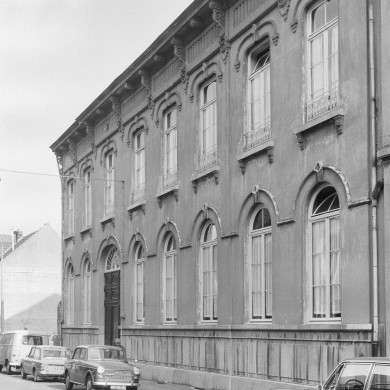 Huis met aan de sterk vernieuwde voorzijde een lijstgevel en aan de achterzijde een puntgevel, XVIII, met vensters in hardsteen.