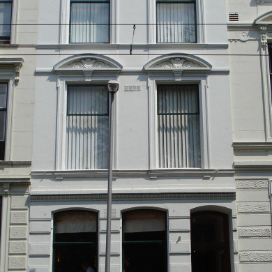 Herenhuis met gepleisterde lijstgevel en stucversieringen, derde kwart negentiende eeuw.