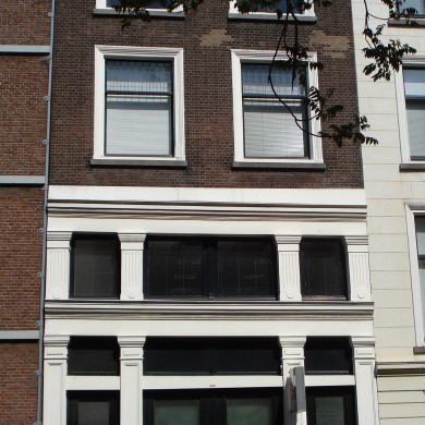 Pand met hoge benedenverdieping met insteek en twee bovenverdiepingen, derde kwart 19e eeuw. Gepleisterde pui met pilasters en lijsten; bakstenen bovengevel met geprofileerde vensteromlijstingen, houten kroonlijst en attiek.