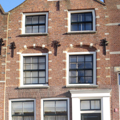 Pand met verdieping, ter breedte van negen vensterassen, derde kwart 18e eeuw. Lodewijk XV-ingangspartij; venster met 12-ruits-ramen.