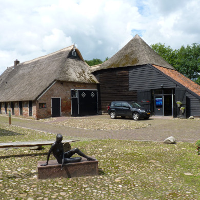 BOERDERIJ met achterbaander en ankerjaartal 1730. (Bescherming betreft het hoofdgebouw met vrijstaande houten schaapskooi 18e eeuw en vrijstaande deels houten en deels stenen hooiberging (1888) en met het uit het begin van de 19e eeuw daterende houten turfhok.