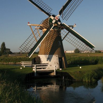 "De Hoop doet Leven". Aan de Z. zijde van het Oegstgeesterkanaal. Grondzeiler 1783. Ronde stenen molen.
