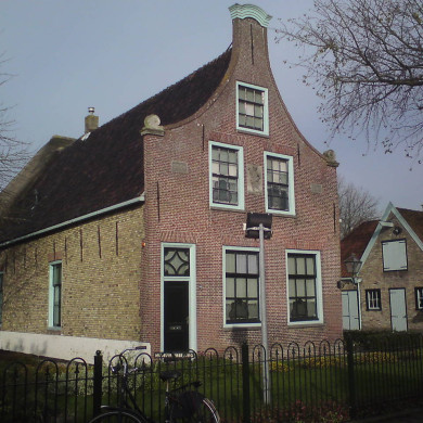 Pand met rechte gevel. Voordeur met bovenlicht in eenvoudige omlijsting. Ca. 1800.
