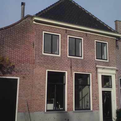 Pand met rechte gevel. Voordeur met bovenlicht in eenvoudige omlijsting. Ca. 1800.