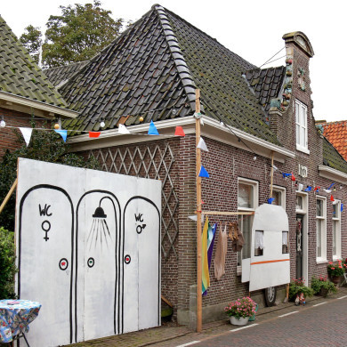 Voormalig Rechthuis, gepleisterd gebouwtje met zadeldak. De noordelijke topgevel nog met twee aanzetkrullen in rococo-stijl. In de zuidgevel een steen met opschrift en 1766 en een andere gevelsteen met Rechtspraak van Salomon (resten van polychromie).