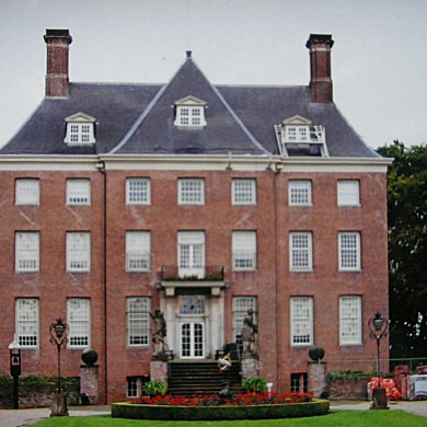 HOOFDGEBOUW. Groot, ongeveer vierkant, blokvormig bakstenen edelmanshuis, gedekt door drie parallel lopende, door hoekschoorstenen bekroonde en slechts aan de voorzijde door dwarskappen verbonden schilddaken, tussen 1674 en 1679 met gebruikmaking van enig muurwerk van het in 1673 door brand verwoeste kasteel opgetrokken, in de 18e eeuw en vooral in het begin van de 20e eeuw - wat de inwendige uitmonstering betreft - enigszins veranderd en aangevuld; uitwendig van uiterst sobere, enerzijds subtiele, anderzijds gedurfd zakelijke architectuur, tot uiting komend in de licht hellende aanzet van het muurwerk, de beperking van het ornament en de fijnzinnige afwerking van het dak tot de voorgevel en de stroeve compositie van de oorspronkelijk uit het park nauwelijks zichtbare achtergevel.