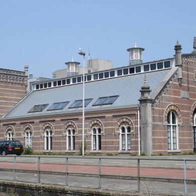 In 1884-88 in eclectische trant gebouwd complex, in 1895 uitgebreid, met twee uitstekende vleugels. Opgetrokken in baksteen, afgewisseld met gele ijsselsteen, onder zinken zadeldaken met lichtkoepel en lantaarnvormige ontluchtingskokers.
