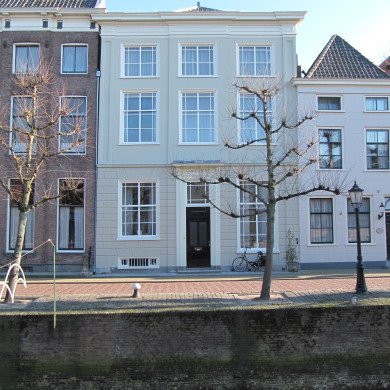 Deftig herenhuis, waarvan de hoge lijstgevel een risaliet bezit en een houten triglyphenlijst. Hardstenen plint, gesneden deur, Lod. XIV en onder het middenvenster van de beganegrond en de verdieping gebeeldhouwd Lod. XIV-lofwerk. Drie stoeppalen met ijzeren zijhekken.