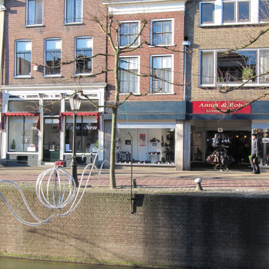 Pand op de hoek van de Kerksteeg, in oorsprong daterend uit de eerste helft van de 15e eeuw. Voorgevel en bekappingen van voor en achterhuis uit 1608. In de met natuurstenen banden en sierankers versierde voorgevel een cartouche met het jaartal 1608 en een opschrift.