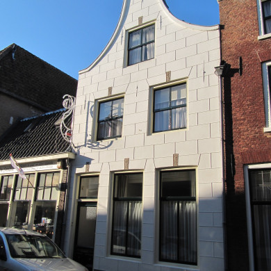 Pand met ingezwenkte en gepleisterde gevel, waarschijnlijk 17e eeuw.
