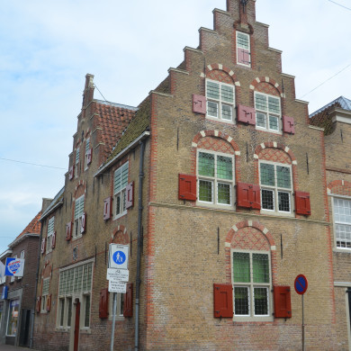 Pand met puntgevel, waarschijnlijk eerste kwart 17e eeuw. Geprofileerde puibalk.
