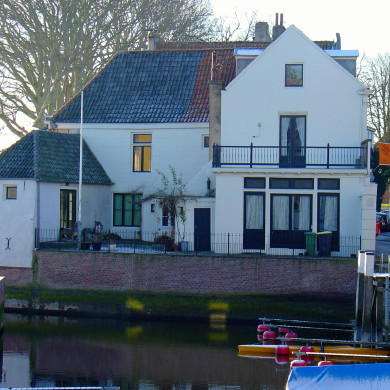 Pand onder zadeldak, 17e eeuw. Aan de Voorhaven gevel met ingezwenkte top van 19e eeuws karakter. Aan de Lekzijde een trapgevel met geblokte ontlastingsbogen. Inwendig o.a. een spiltrap en fragmenten van een betimmering uit de 17e eeuw. Sleutelstukken.