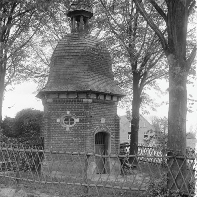 Jo.l. Vrouwenkapel, zeszijdig gebouwtje met hoeksteunberen, een klokvormig leien dak - bekroond door een open koepeltje - een korfboogingang, waarboven een steen met 1676, en drie ovale vensters. Altaartje met retabel, XVII B; madonnabeeldje, XVIIc.