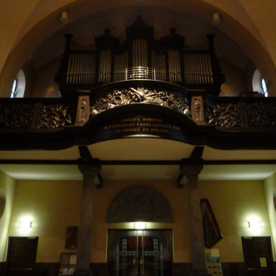 Pastorie, aangelegd om een binnenhof, van baksteen met kozijnen van Naamse steen. Op poortsluitsteen 1778; in de hofgevel een wapensteen en het ankerjaartal 1683, een ingang in Naamse steen (1772) met gesneden bovenlicht in Lodewijk XV-stijl.