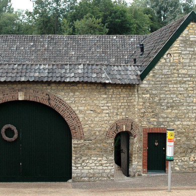 Hoeve van kunradersteen, met bovenverdieping van vakwerk, XVII, met diagonaalschoren.