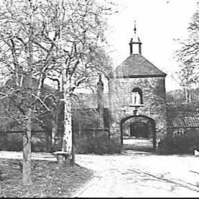 Grote boerderij van het hoftype. Woonhuis en schuur elk met zadeldak tussen topgevels met vlechtingen. Binnenplaats aan de voorzijde afgesloten door een muur met poortpijlers en een voetgangerspoortje in een hardstenen omlijstingen met profielen en het jaartal 1762.