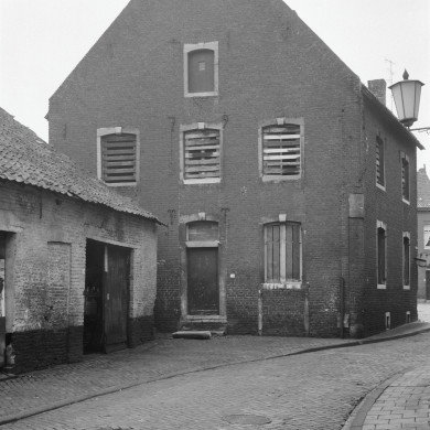 Huis van baksteen, XVII A, met aan de straat een hoge puntgevel met vlechtingen en tweelicht- en kruiskozijnen van Naamse steen. Lodewijk XV-deurvleugels.