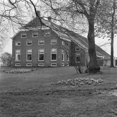 Grote boerderij van het Oldambtster type met vier "krimpen" om de overgang in het vier vensters brede voorhuis naar de schuurbreedte te bewerkstelligen. Ingang terzijde. Voorhuis onderkelderd en voorzien van twee zaadzolders met vensterseries.