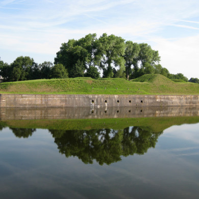 De aanleg vormt een onderdeel van de verdedigingswerken rond Naarden en omvat een bastion en voorliggende natte gracht.