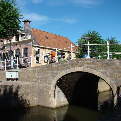 De stenen overbrugging (boogbrug) op de kruising van de Binnengracht en de Dubbelstraat, alsmede de zuidelijke daarvan gelegen hoge houten voetbrug.