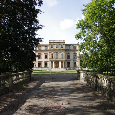 BRUG NAAR HET VOORPLEIN. Bakstenen boogbrug met sierende delen van natuursteen, omstreeks 1806 gebouwd door B.W.H. Ziesenis, gewijzigd tussen 1880 en 1884. Brede brug met naar het voorplein omhoog hellend wegdek. De bruggehoofden buigen op de oevers ver naar buiten uit; aan de noordzijde gaan de keermuren over in die van het voorplein.