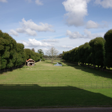 BLOKHUT. Het monumentaalste "rustieke" bouwwerk in een Nederlands park, dienende als hertenverblijf en bestaande uit een stal voor de dieren en daarboven een hooizolder, gebouwd tussen 1812 en 1844.
