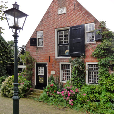 Doopsgezinde Kerk. Eenvoudige zaalgebouw blijkens gevelsteen uit 1838. Twee windvanen, een schip en een paard.