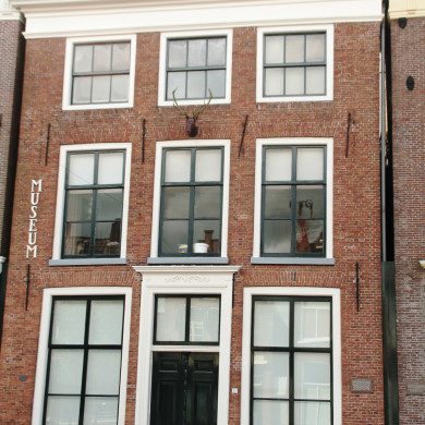 Pand met hoge verdieping onder schilddak; op de verdieping negenruitsvensters.