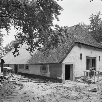 Boerderij uit de 18e eeuw onder rieten wolfdak. In de voorgevel twee vensters met luiken en zesruitsschuiframen. Rechts een opkamer met tweelichtskozijn en onderluikjes uit de bouwtijd.