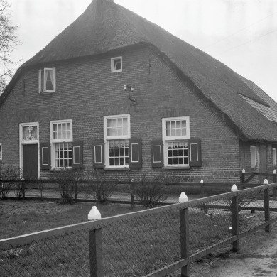 Gave BOERDERIJ van het Staphorstse type. Traditionele, in aanleg oudere, doch wat betreft detaillering 19e eeuwse (XIX B) Staphorster boerderij onder deels met riet deels met pannen belegd wolfdak.