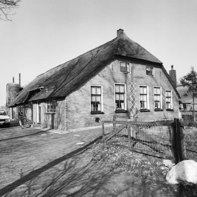 Gave boerderij van het Staphorstse type. Traditionele in aanleg vermoedelijk nog eind 18e eeuwse, doch wat betreft detaillering 2e helft 19e eeuwse Staphorster boerderij onder rieten wolfdak met houten schoorsteen tegen rechte met hout en riet beklede achtergevel.