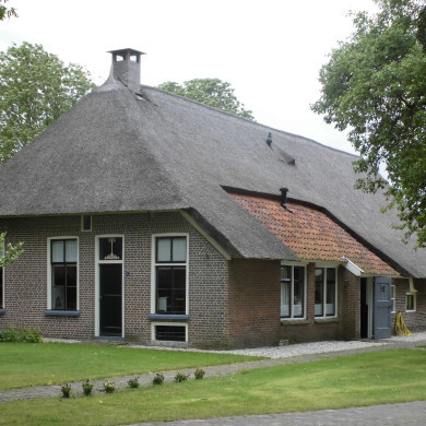 Boerderij onder met riet gedekt schilddak.