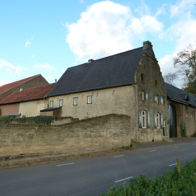 Hoeve De Droogenberg. Aan de binnenplaats op de verdieping van het woongedeelte, drie grote houten kruis- en twee smalle tussendorpelkozijnen. Hekposten met vazen, XVIII D. Boven de poort in de achtervleugel van de binnenplaats een wapen in hardsteen.