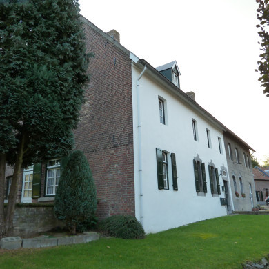 Hoeve van baksteen, mergel en vakwerk om gesloten binnenplaats; XIX A. Boven de poort 1841. Boven de staldeur een herbezigd hardstenen kopje, XVII.