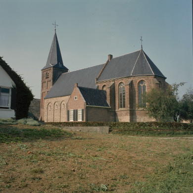 Laatromaanse, bakstenen TOREN met een versiering van lisenen en boogfriezen, bekroond door een ingesnoerde naaldspits. Traptoren tegen de noordzijde. Mechanisch torenuurwerk J. van de Kerkhof, Aarle-Rixtel, later voorzien van electrische opwinding.