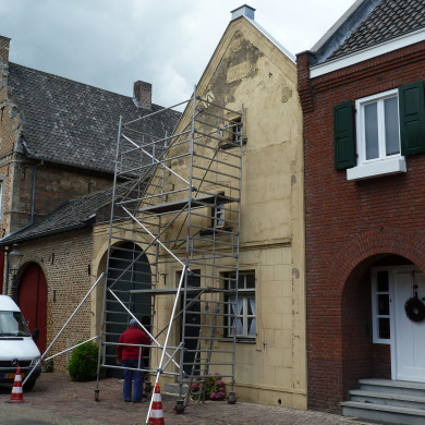 SCHIPPERSHUIS. Bakstenen huis met verdieping en zadeldak, aan de straatzijde afgesloten door in- en uitgezwenkte gevel in de trant der Maaslandse Renaissance. XVII. Latere ingang en vensters in segmentboogomlijstingen van Naamse steen.