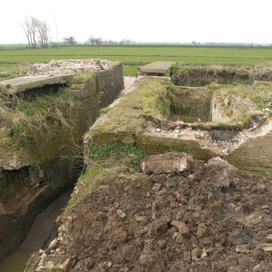 Restanten van de reeds in 1716 aanwezige, doch door brand in 1979 gedeeltelijk verwoeste wipwatermolen en sluismolen - dienende als noordelijke bovenmolen van een groep van vijf molens die de polder Streefkerk bemaalden -, bestaande uit een aangeaarde molenbelt met gemetselde boogbrug, waarbij de waterloopmuur aan de achterzijde is voorzien van een natuurstenen sluissteen uit 1769, en de in 1874 in verband met gewijzigde waterpeilen aangebrachte, omstreeks 1 m. hoge, stenen voet tot rijzing van de molen.