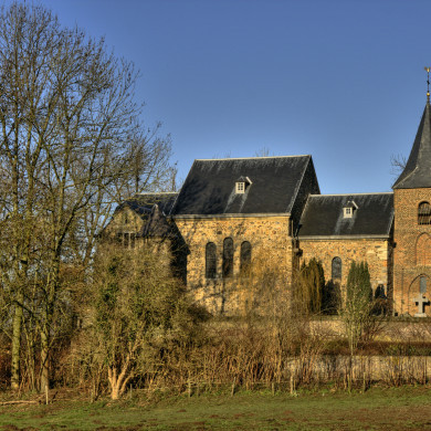St. Dionysiuskerk. Gelegen op een steile punt van de hoge oever van het winterbed van de Maas, op de plaats van een Frankische burcht. Schip en smaller koor, XV, oostelijke toren, na 1515, en westelijke uitbreiding uit 1916-'18 van P.J.H. Cuypers. Overwelving van de romaanse gedeelten, XIII. Inventaris: o.a. romaanse doopvont, kerkbanken. Houten beelden: kleine calvarie, ca. 1606; Mariabeeld, XVII; H. Hubertus, XVIII; H. Petrus en H. Paulus, ca. 1700; enige figuren can een renaissance-altaar; mensa (in krocht) en 3 grafkruisen (1558, 1616 en 1618). Klokkenstoel met gelui bestaande uit een klok van anonieme gieter, 1622, diam. 56 cm en een klok van C. Deforest, N. Simon en C. Drouot, 1790, diam. 64 cm.