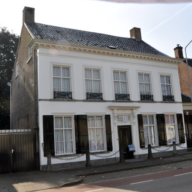 Herenhuis in Empire trant, onder dwars zadeldak tussen zijtopgevels. Voorgevel witgepleisterd, ingang onder kroonlijst op voluutvormige consoles. Zesdelige schuiframen. Begin negentiende eeuw.